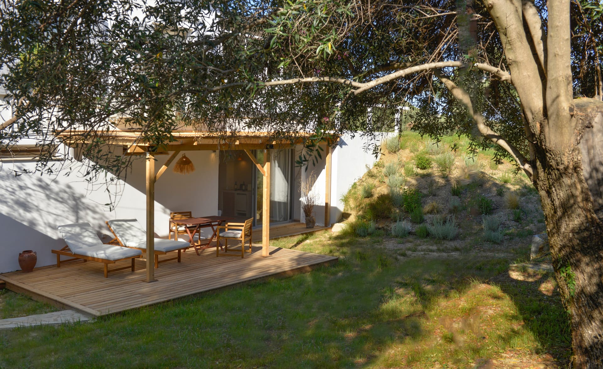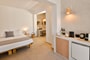 The room has a bedroom with a king-sized double bed and a spacious sitting room with 1 sofa that can convert into 1 single bed. There is also private furnished veranda (sunbeds & table with chairs)